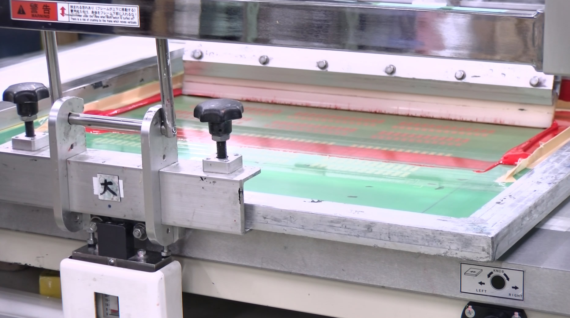 スクリーン印刷とは、版に開けられた微細な孔(あな)を通してインクを被印刷物に押し出す孔版印刷の一種です。